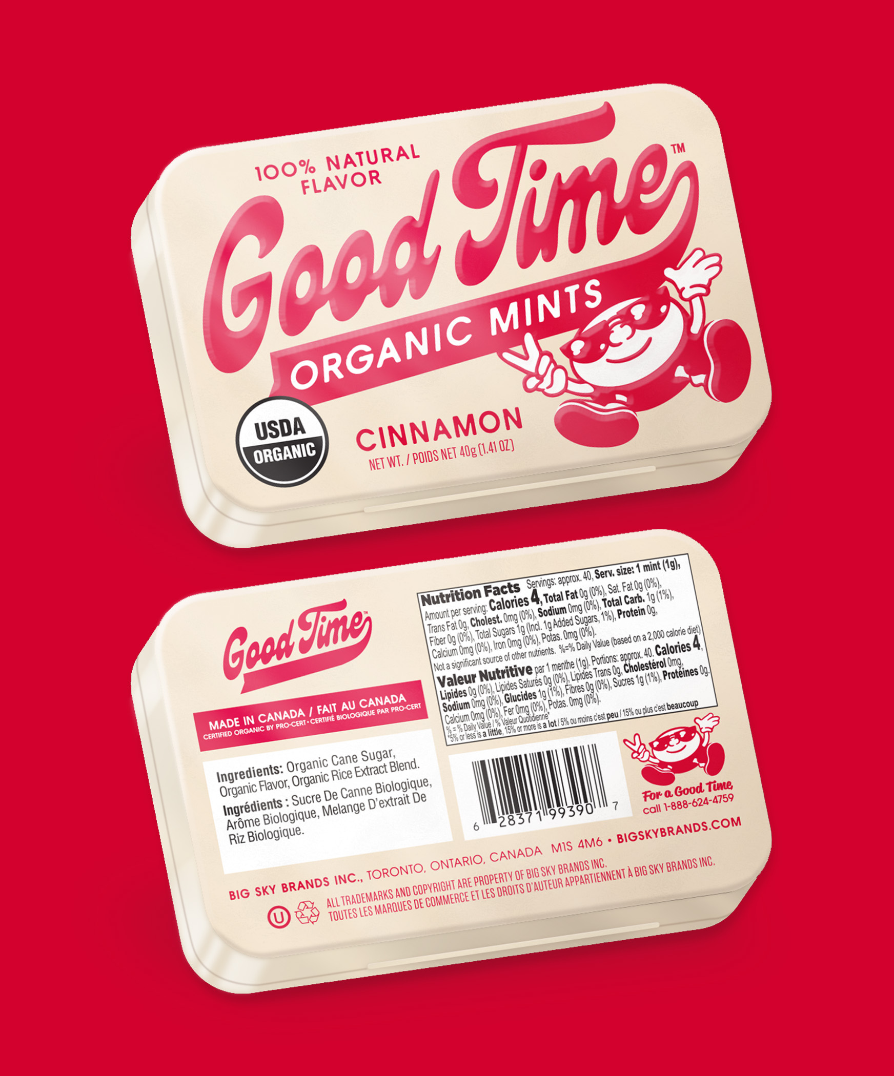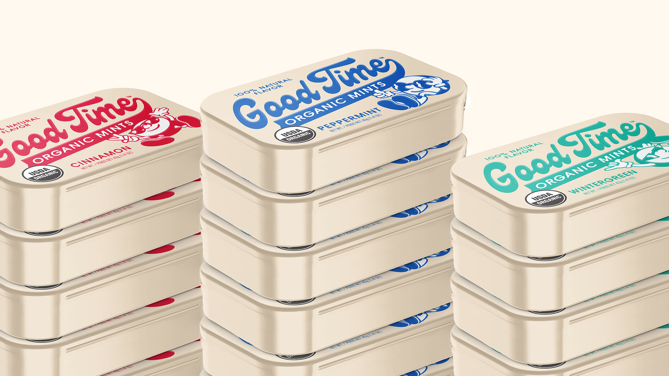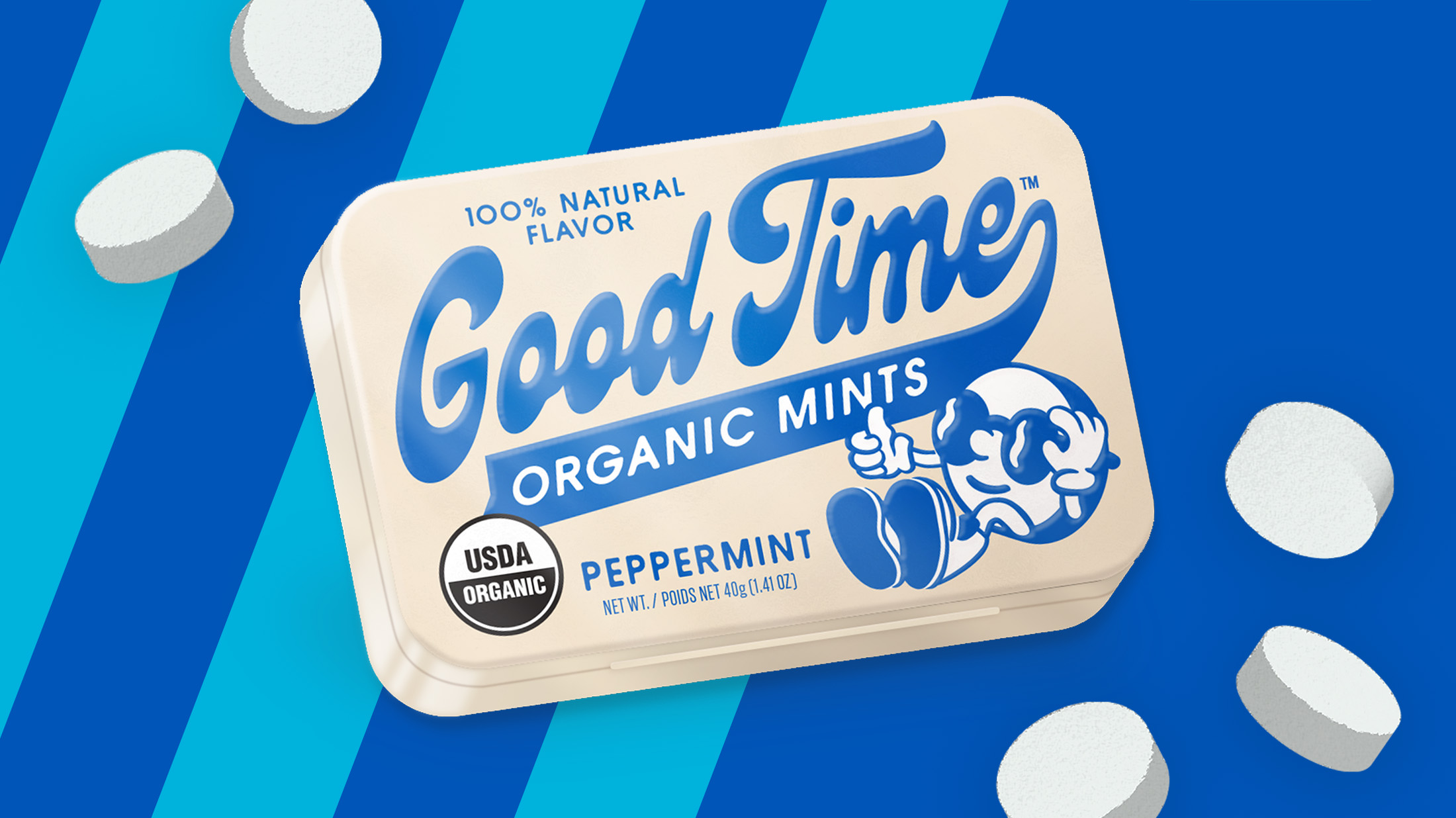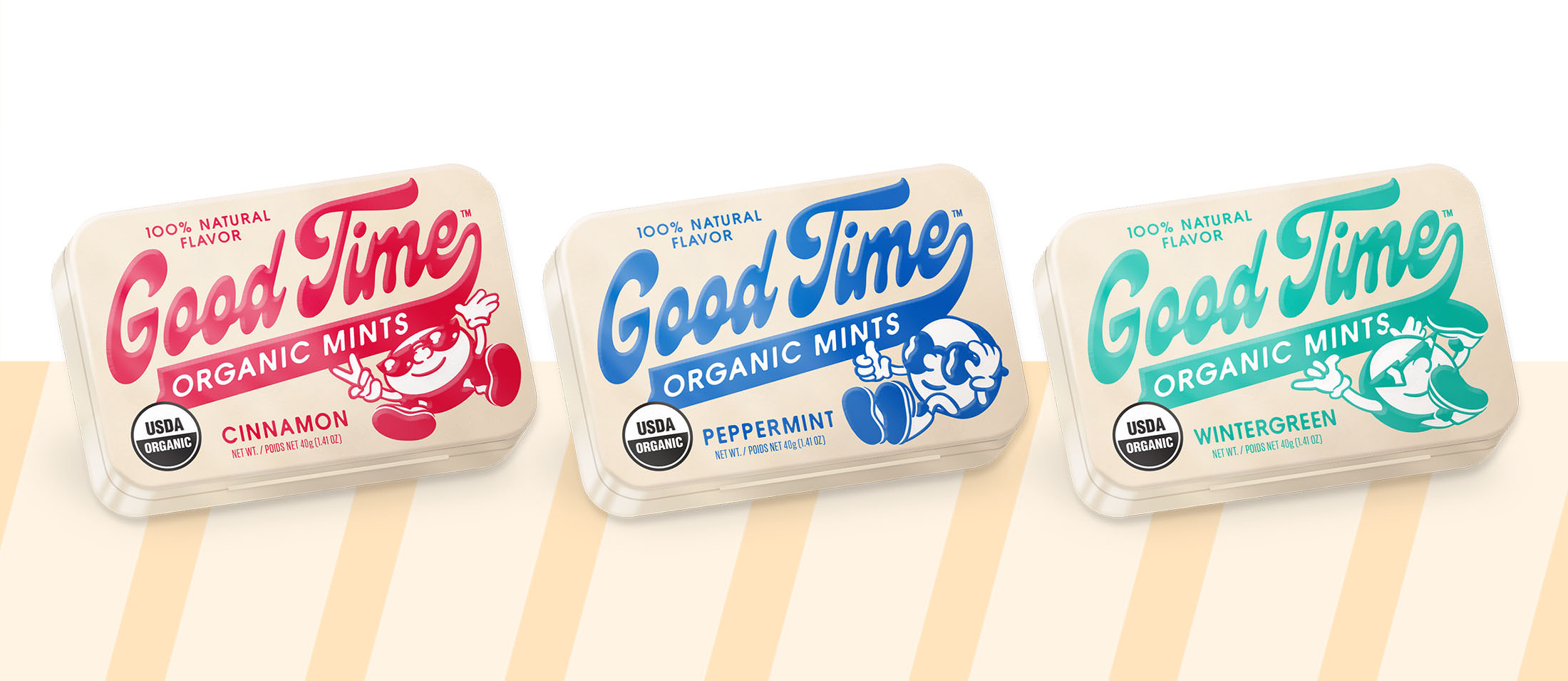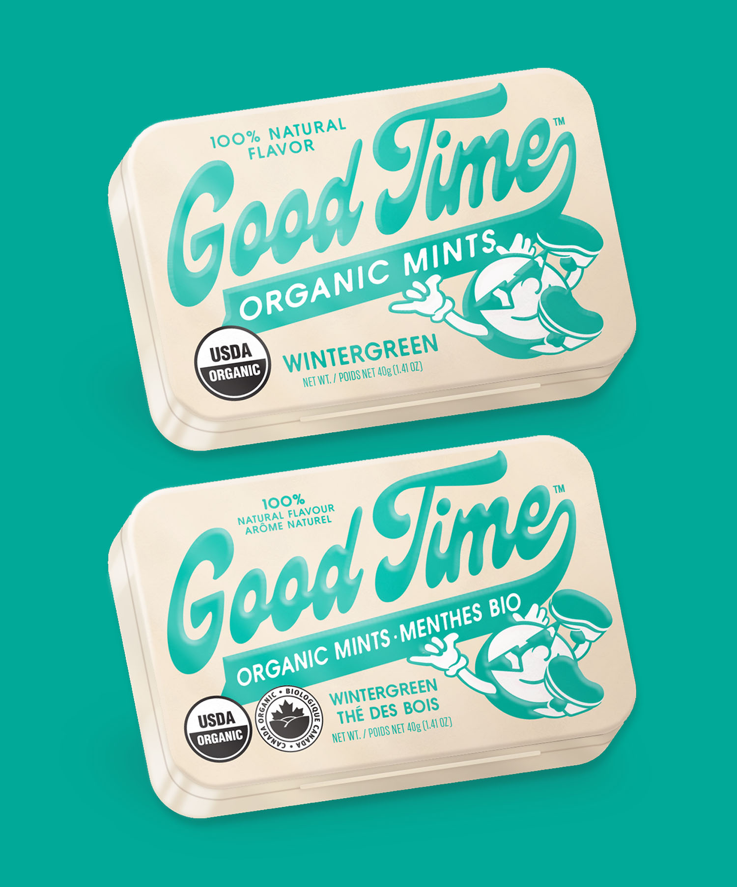 Good Time, an organic line of mints by Big Sky Brands, positions the product as more than a mint to become a stylish lifestyle choice. The resulting packaging uses illustrated mascots as ambassadors of positivity and good vibes for an effortlessly stylish tin.