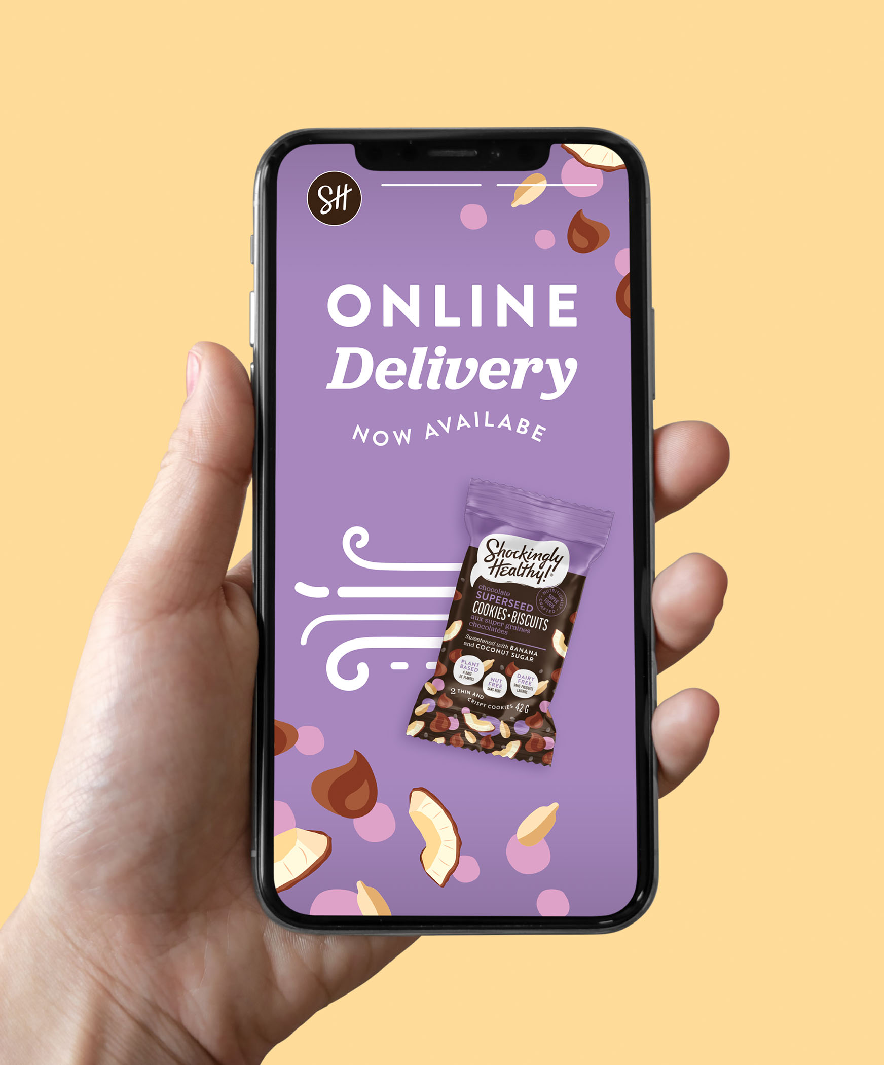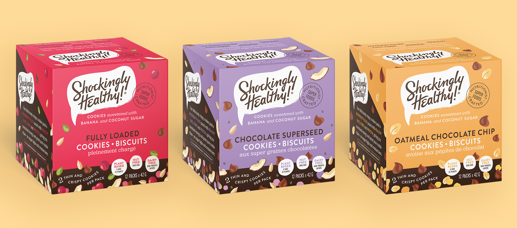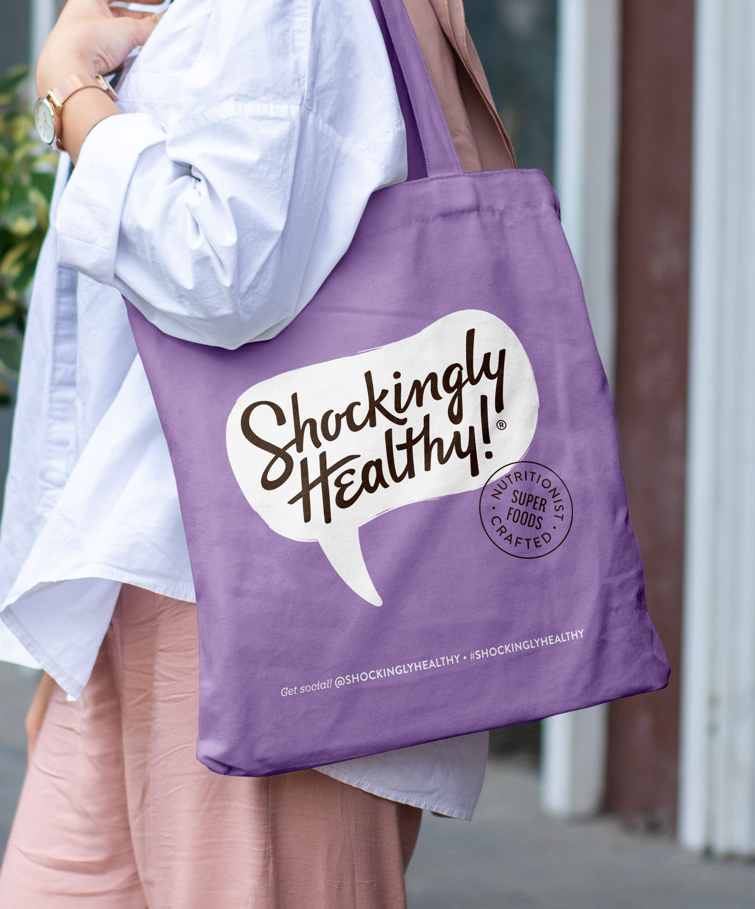 Shockingly Healthy crafts delicious brownies, blondies and cookies, fuelled by superfood ingredients that had customers saying they’re “shockingly healthy.” Shockingly Healthy bold brand identity and packaging emphasized indulgent tastes and health-conscious benefits for a playful personality.